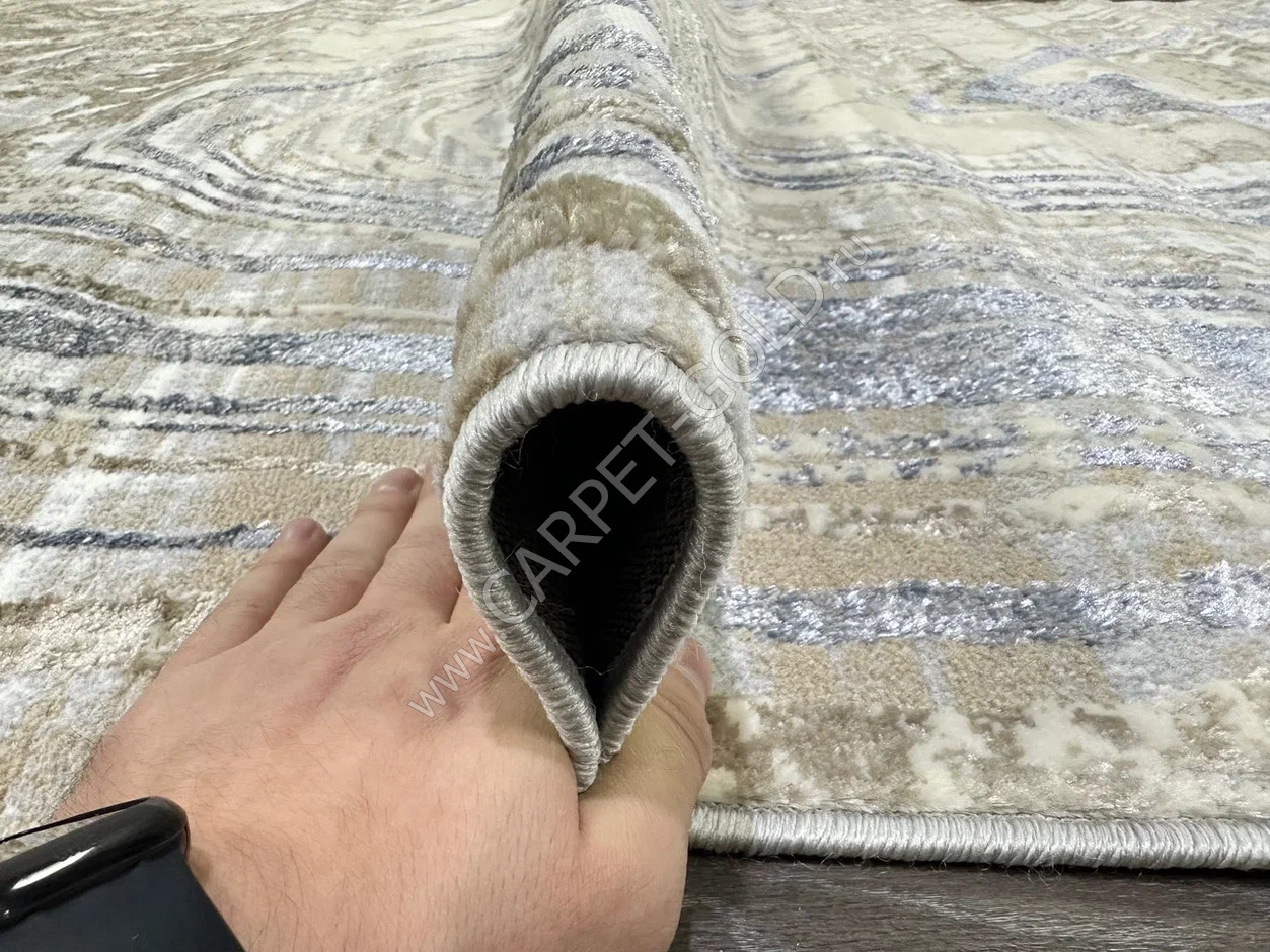 Ковер турецкий D065A Semnan (Полиэстер хит-сет, бежевый, голубой) овальный